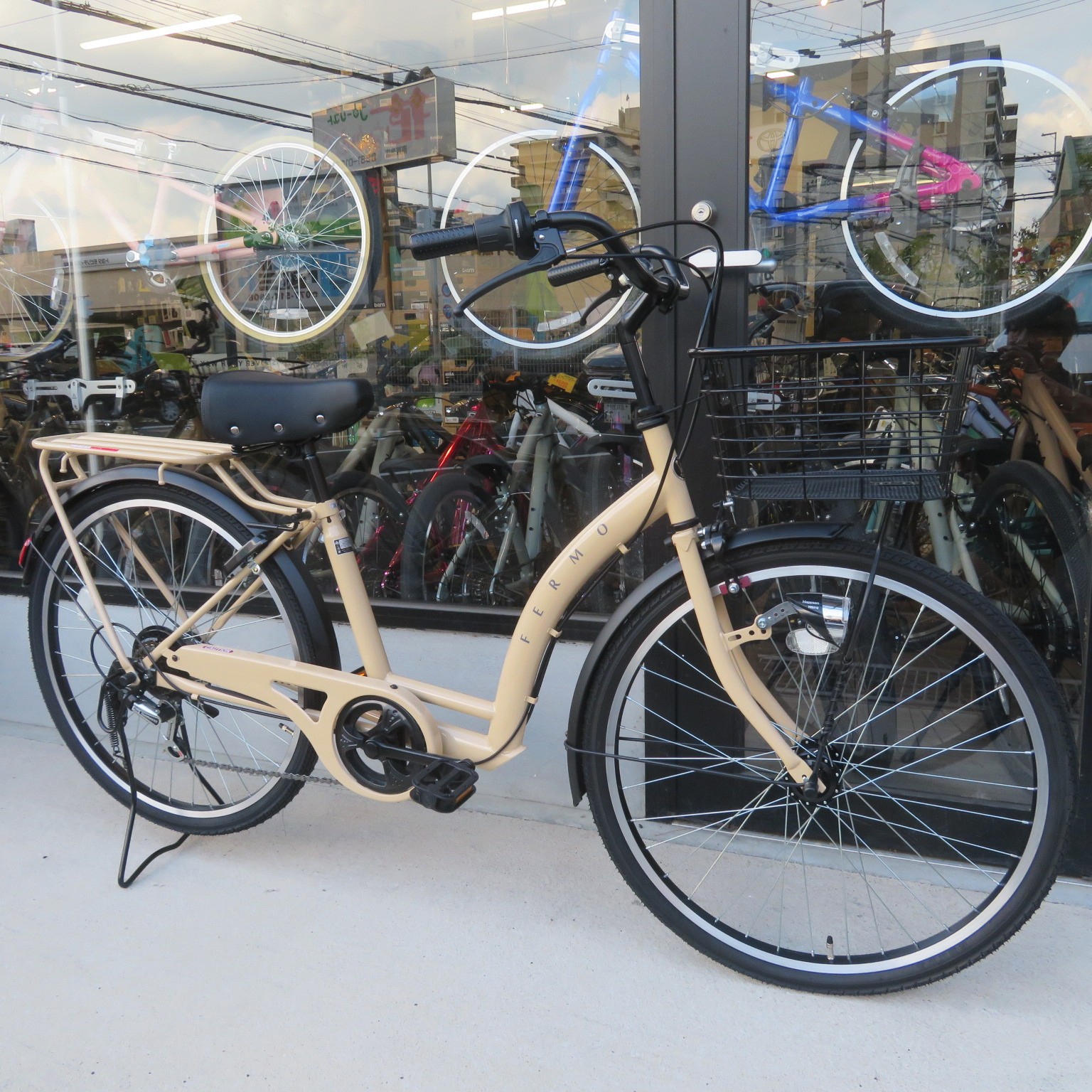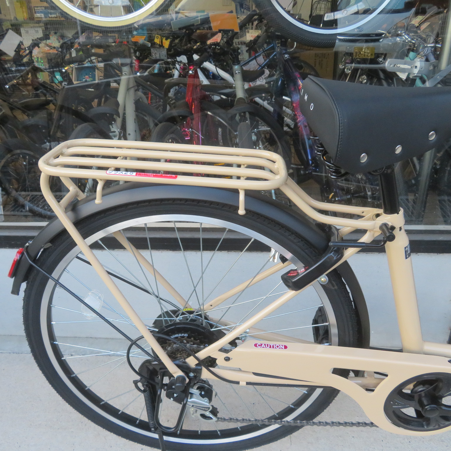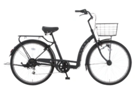 機能:6段変速、BBカセットハンガー(ペダル軸の緩みがでにくい)、オートライト(自動点灯)、ローラーブレーキ(ブレーキ音静か)、クラス25kgキャリア(子供乗せ可能)、幅広タイヤ。 重量:20.5kg カラー:カフェ、ホワイト、ペールサックスブルー、マットブラック コメント:スカートでも跨ぎやすいフレーム設計。近所のお買い物用から通勤、通学まで幅広く使えます。